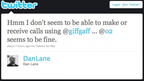 Today at around 4-5pm the giffgaff network appeared to completely die for at least 30 minutes. No calls or texts in or out for that whole period. When I checked, the giffgaff forum had a handful of member posts complaining and speculating about the issue - some people suggested it was an O2 issue but calls from an O2 SIM were working fine for me. It’s now 11pm and there has been no official mention of any outage on the giffgaff blog… not even a “something went wrong, we don’t know what but we’re looking into it” and that is completely unacceptable. As is this Twitter apology which is lacking somewhat: